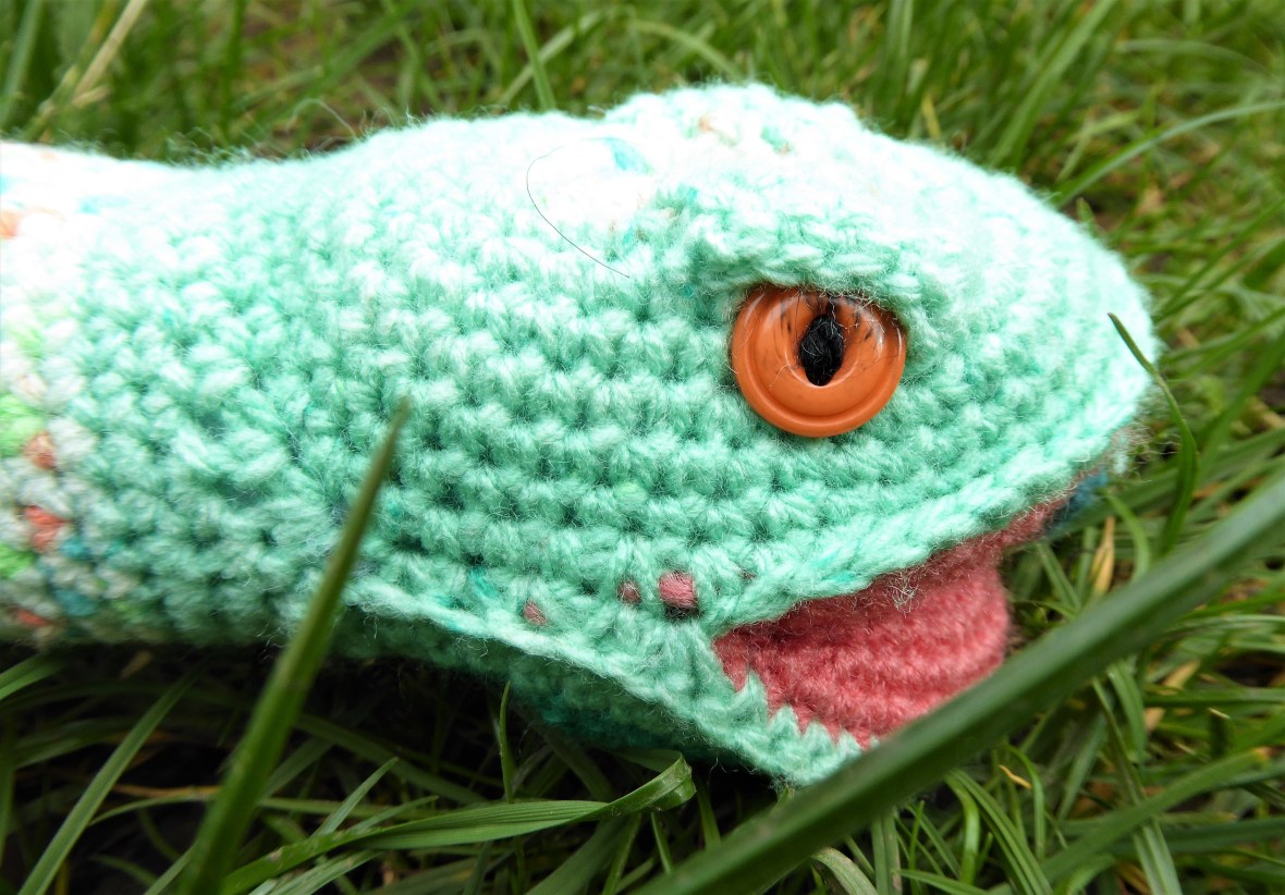 Bright as a Button March 11, 2017 • 4656 × 3247 • It’s Not Eassssy Being Green Used 2 hole buttons for the eyes. Stitching them on with black yarn makes effective slit pupils. (The buttons are slightly different as they came from a big random bag.)