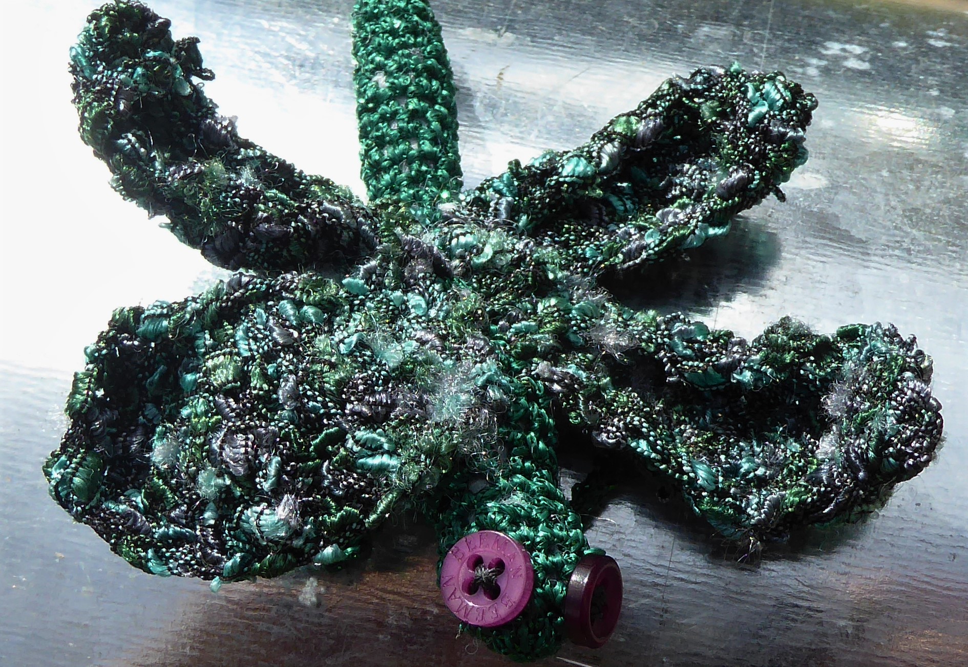 Dragonfly Eyes April 17, 2017 • 1890 × 1303 • Dragonfly His eyes come from a bag of random buttons. No two are exactly the same, so these were the closest matching pair I could find. Not sure why I decided on purple.