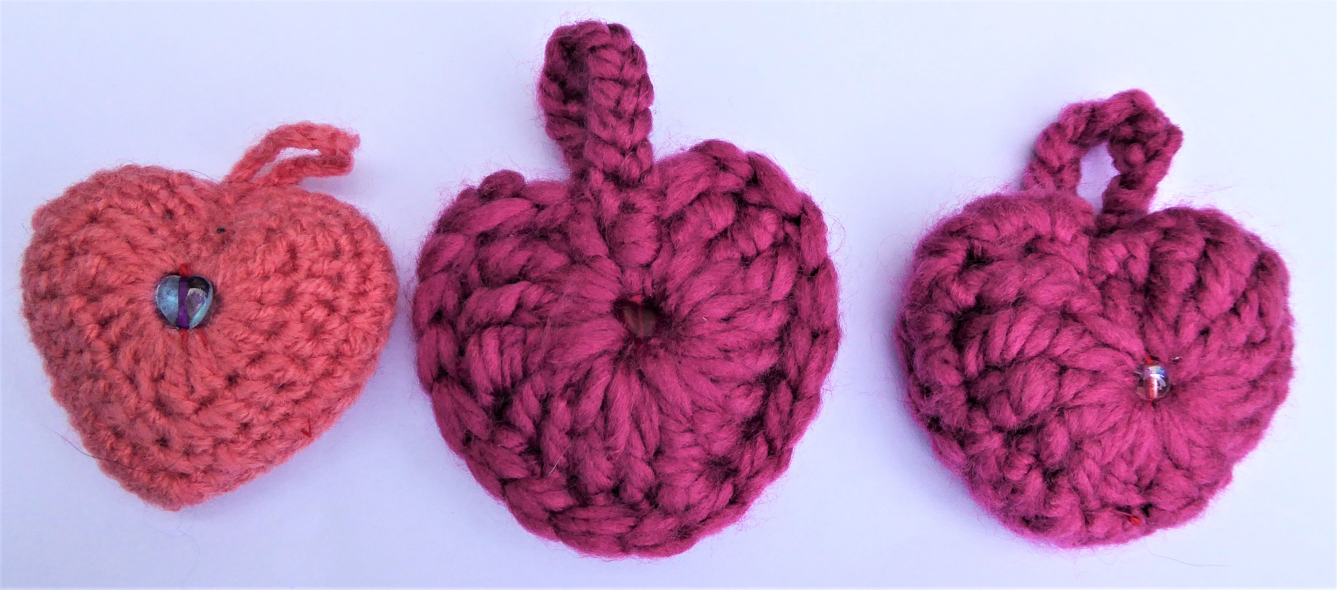 PlanetJune Sweethearts June 10, 2017 • 4544 × 2006 • I Heart London Experimenting with the PlanetJune Sweetheart pattern with different yarns and central beads for embellishment.