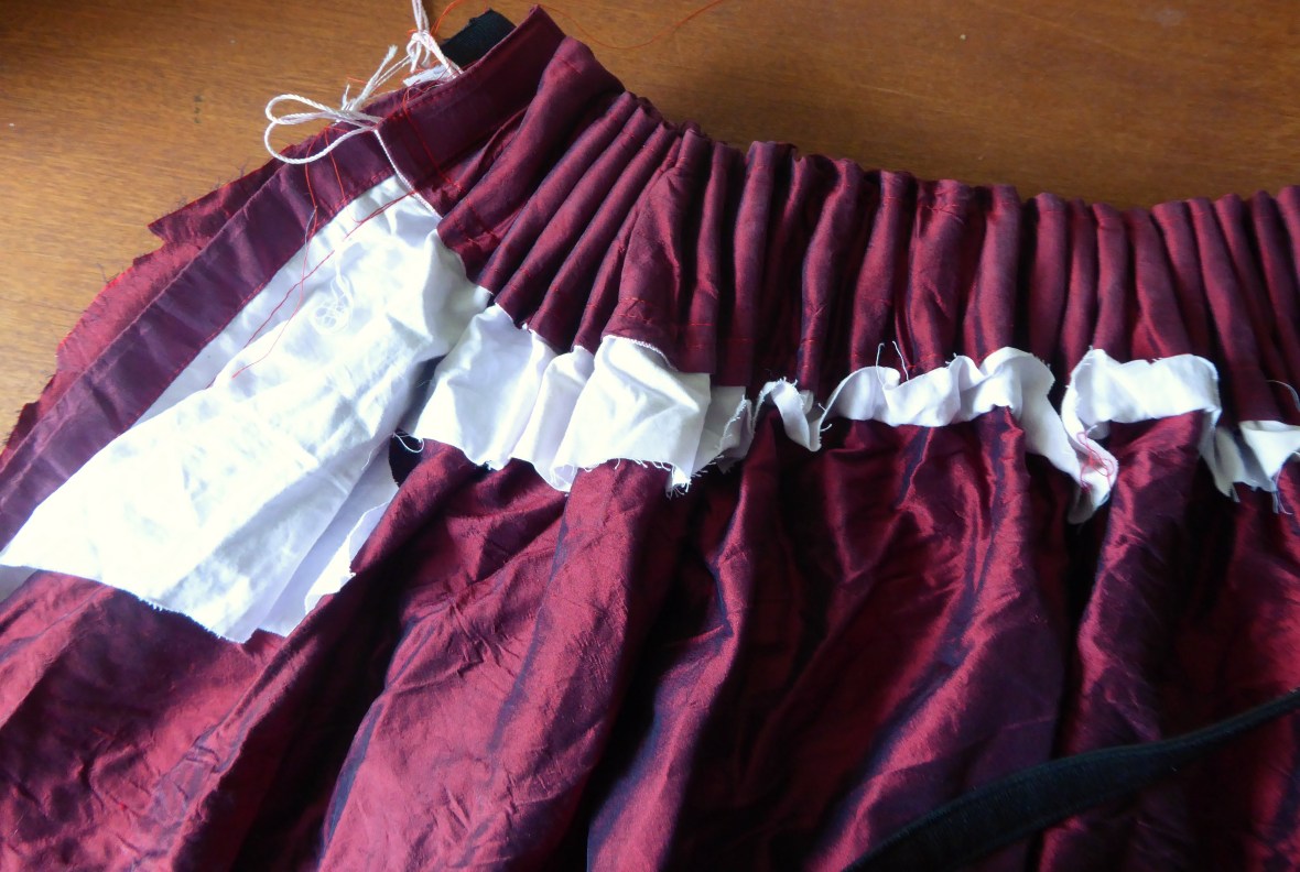 I tried to cut the cotton lining of the curtain short so it wouldn’t show under the silk, but I was very tired, it was late, it all went wonky, I got in a massive temper and cut the whole lot out. This detracted from the weight and gather of the skirt, but at that point I didn’t care anymore.