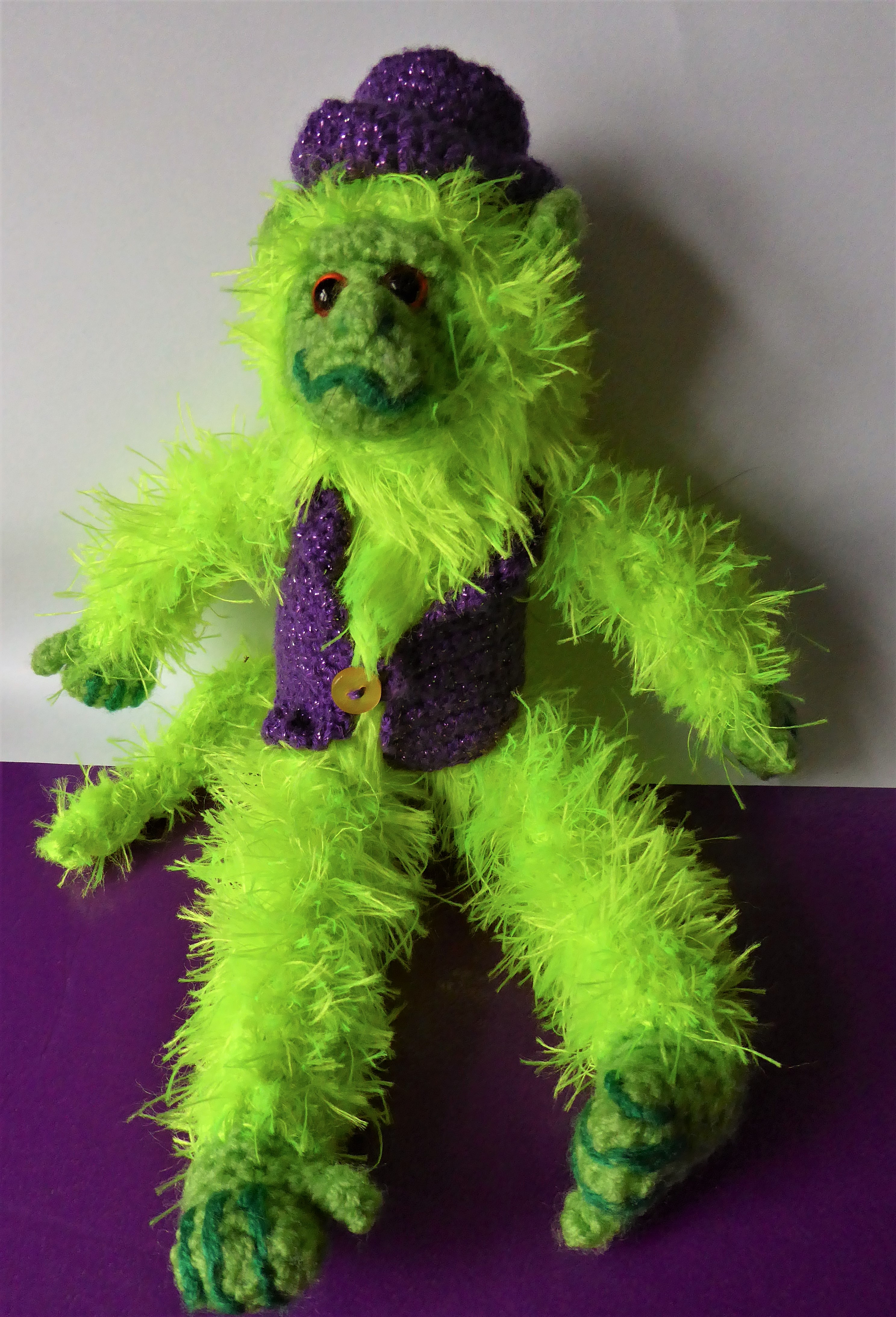 On a Mountaintop October 27, 2017 • 2975 × 4369 • Not My Circus, Not My Monkeys My partner brought home this purple sparkly yarn (with a ton of others) from the Aldi random stuff aisle. It’s strong enough to contrast with the green, and the sparkle gives it a circusy feel.