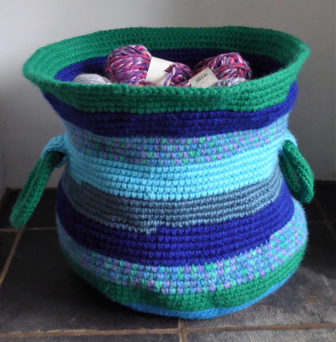 Full Up April 17, 2018 • 2964 × 3015 • Washing Line Basket The basket full stuffed with a LOT of yarn balls! Still not totally rigid, but I think that’s part of its charm.