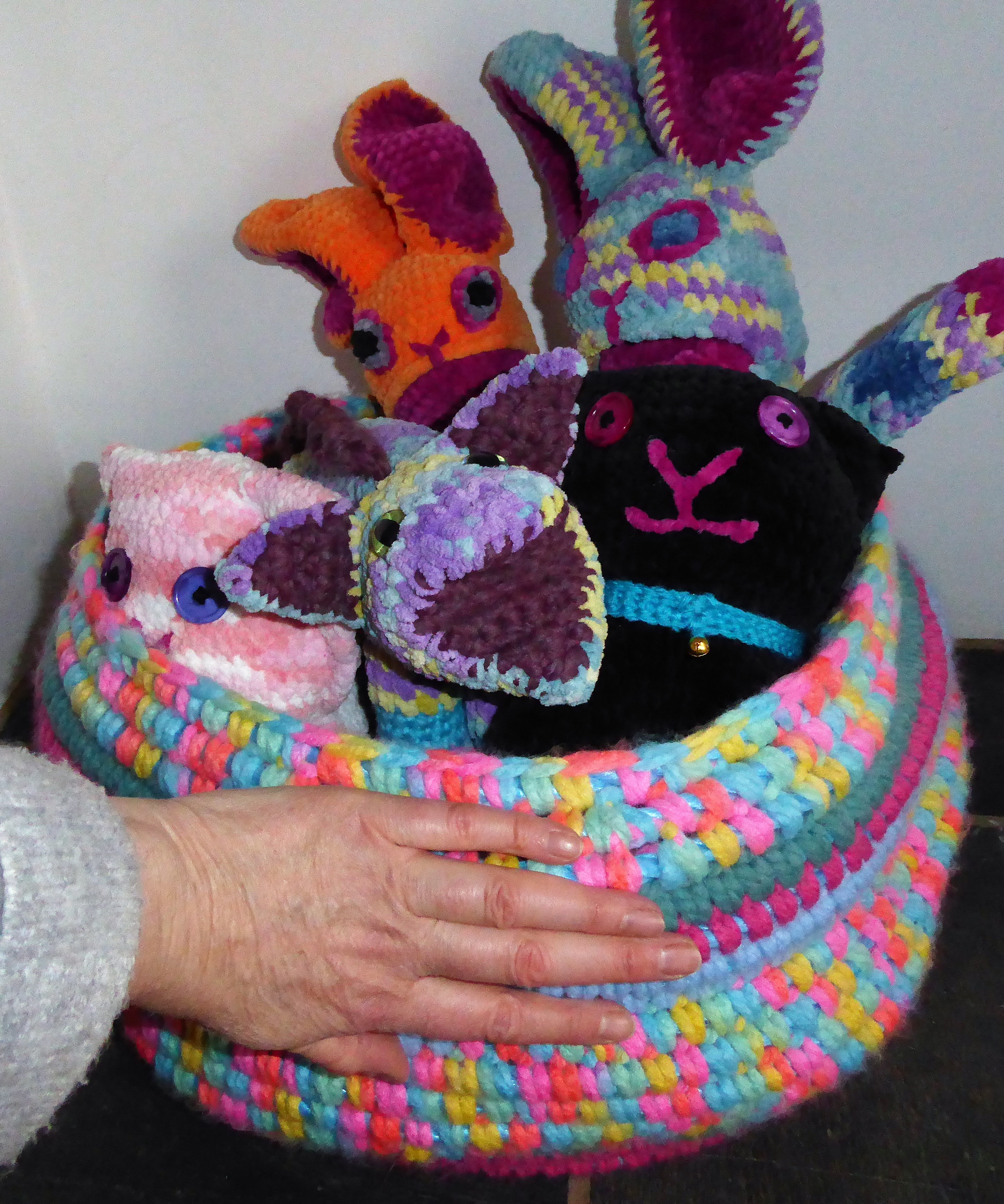 Critter Containment April 28, 2018 • 2904 × 3483 • Rope Core Basket My hand for scale, and the basket in use!