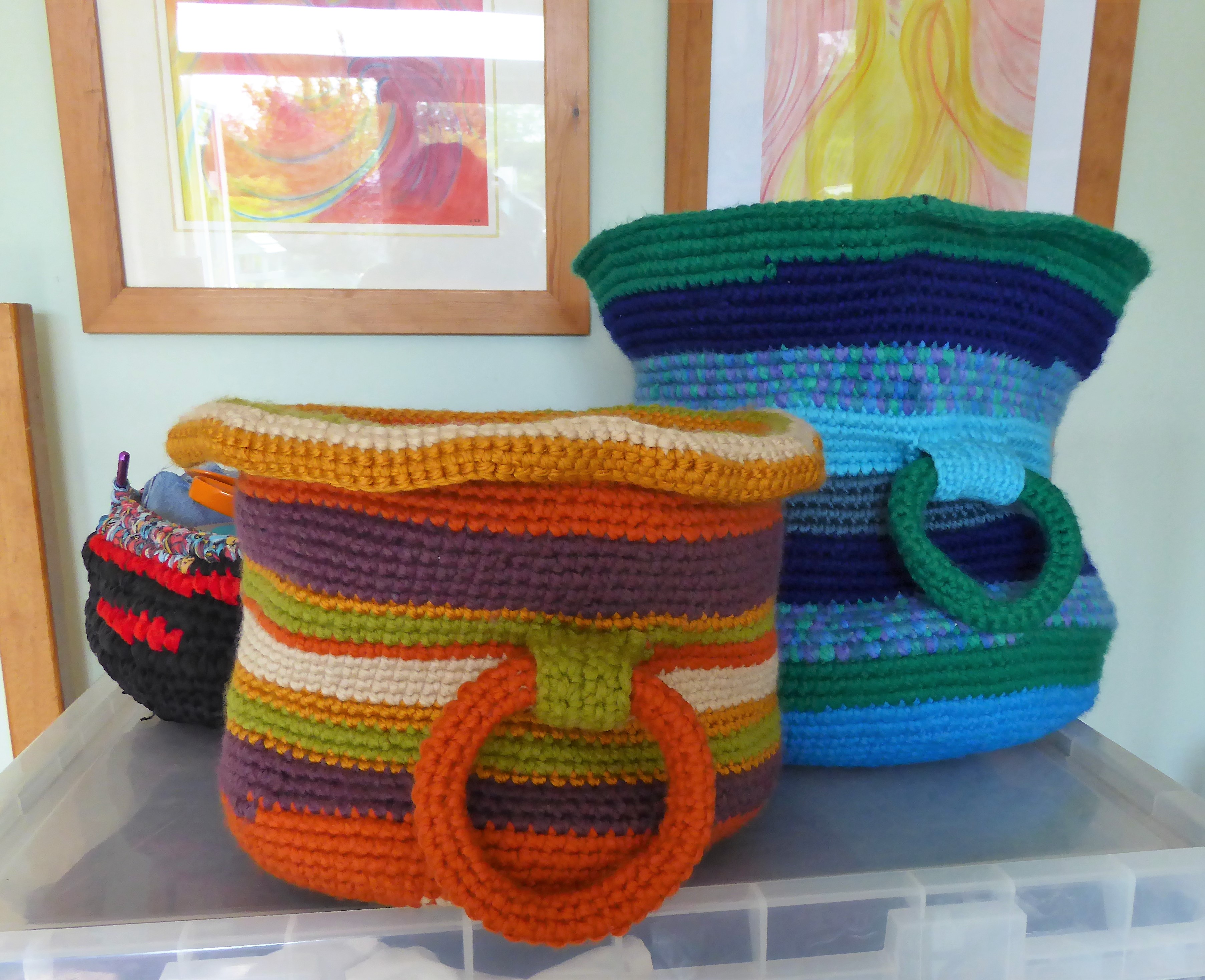 Orange You Glad To See Me? May 16, 2018 • 3611 × 2936 • Goldilocks’ Crochet Hooks The new basket front and centre. Some of my partner’s art in the background. The box contains some of my fabric stash.