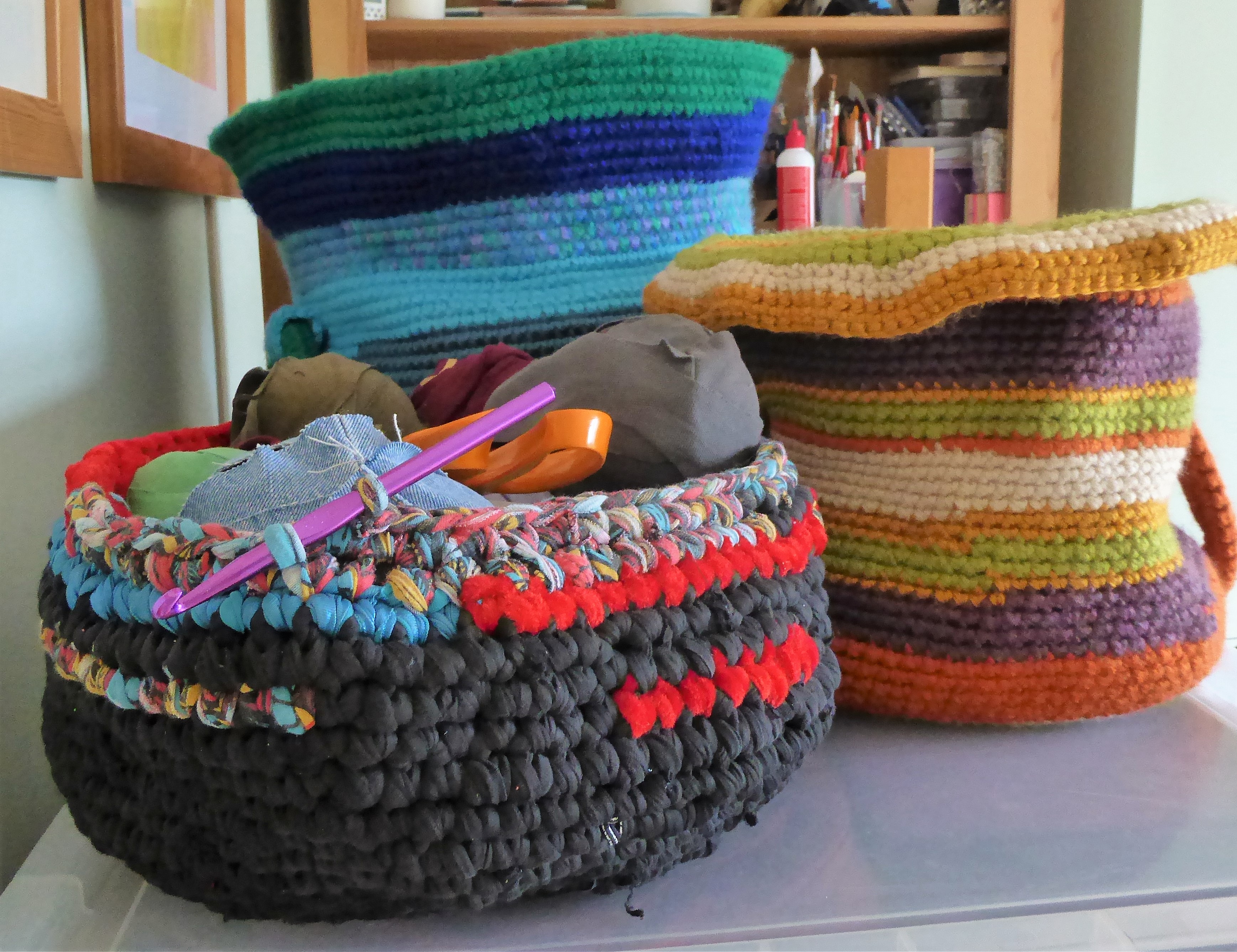 Basket Family May 16, 2018 • 3474 × 2673 • Goldilocks’ Crochet Hooks That’s my megabasket, the Mermaid Pool, in the background. It is huge.