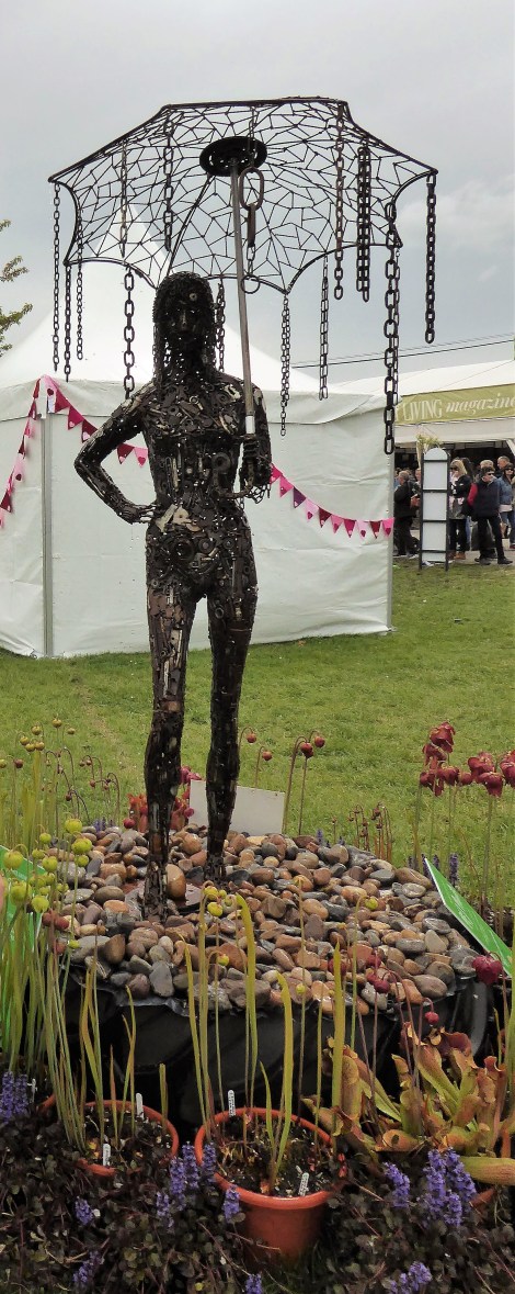 This clever sculpture made from all sorts of scrap parts is also a water feature. The sculptor, Paul Thomas, told me started with the umbrella frame, which he found discarded in the street, and worked from there.