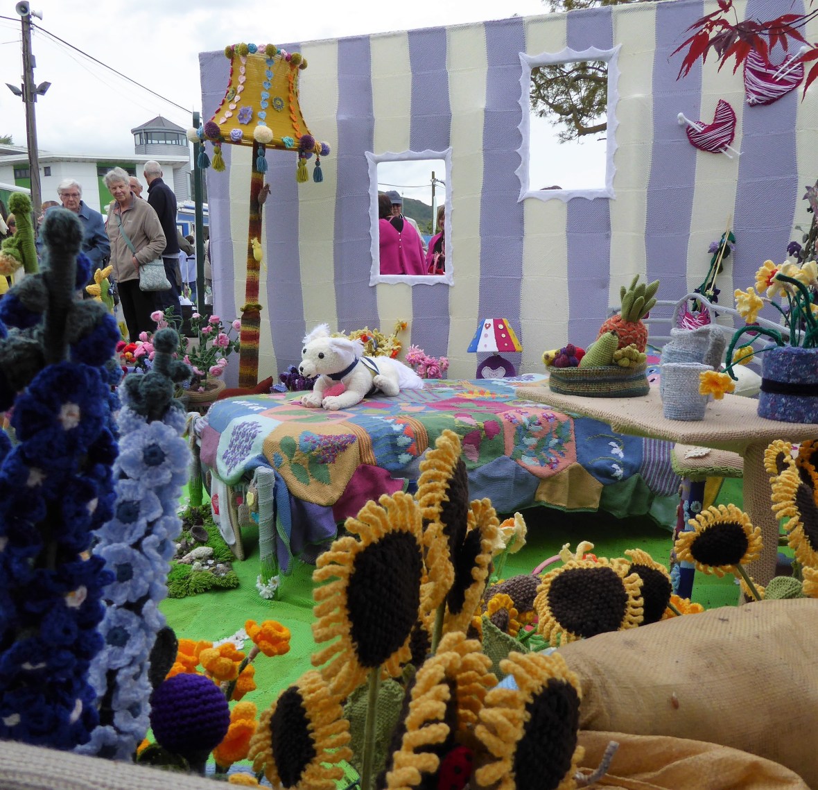 Chica May 24, 2018 • 3301 × 3188 • RHS Malvern Spring Festival The knitted doggo on the bed is a likeness of Chica, a Pets as Therapy dog.
