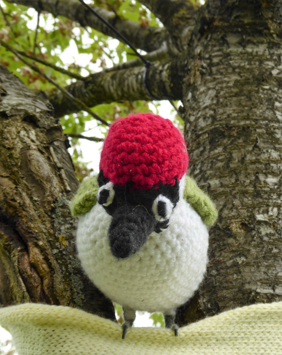 Tap Tap Tap May 24, 2018 • 3672 × 4631 • RHS Malvern Spring Festival This life size green woodpecker was crocheted by John Pickles. He is perched in the avenue of trees hung with memorial hearts.
