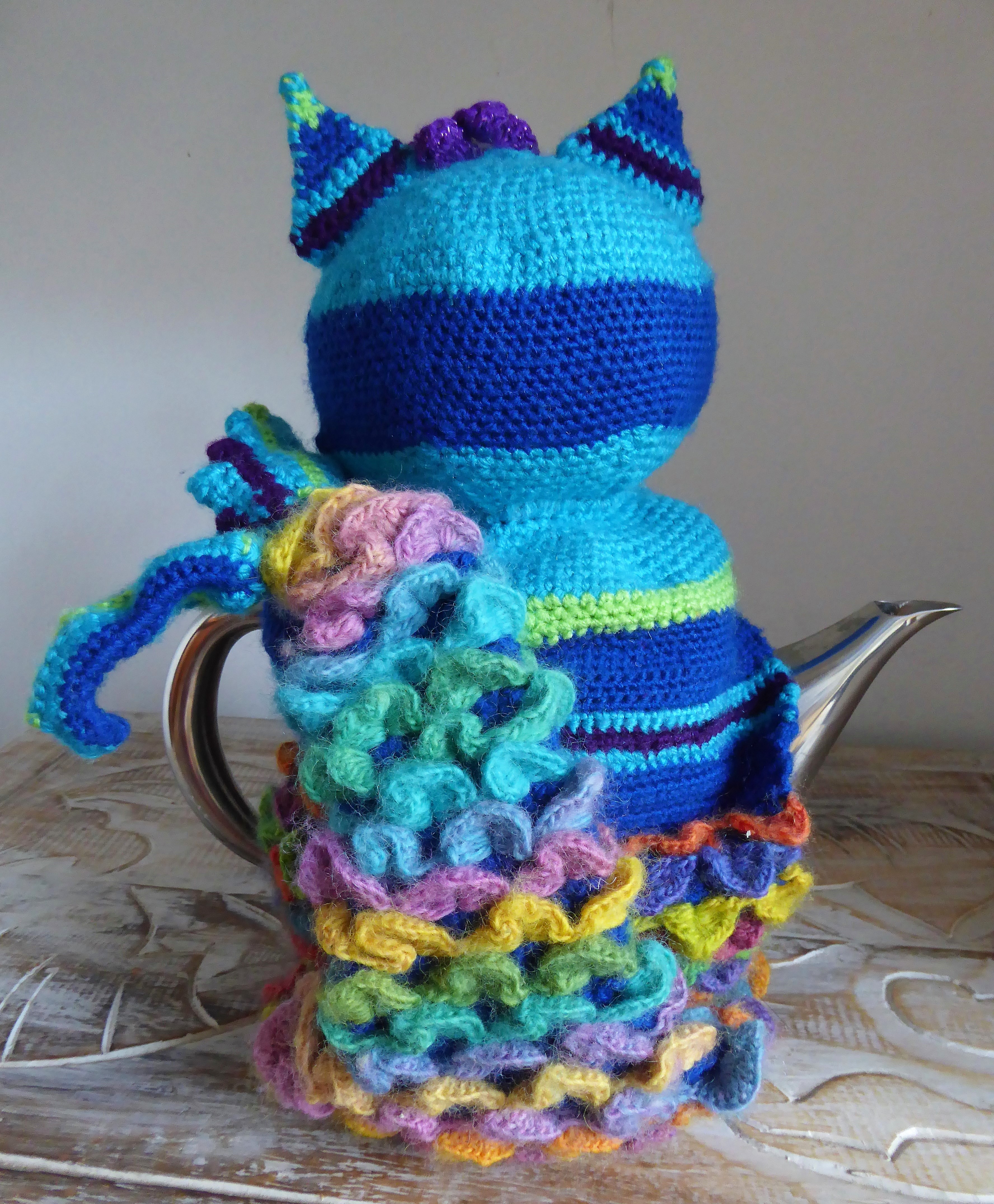 Splash July 16, 2018 • 3552 × 4304 • Rainbow Mermaid Cat Tea Cosy I gave her tail a bit of a bend to suggest movement and give some life.