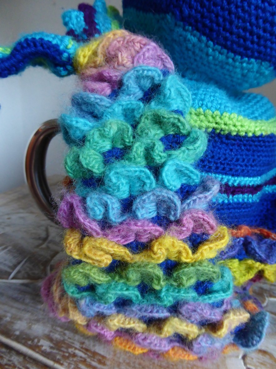 Scale Detail July 16, 2018 • 3672 × 4896 • Rainbow Mermaid Cat Tea Cosy The dragon scales take up a lot of yarn, but show off the rainbow graduation nicely. I used two different rainbow yarns.