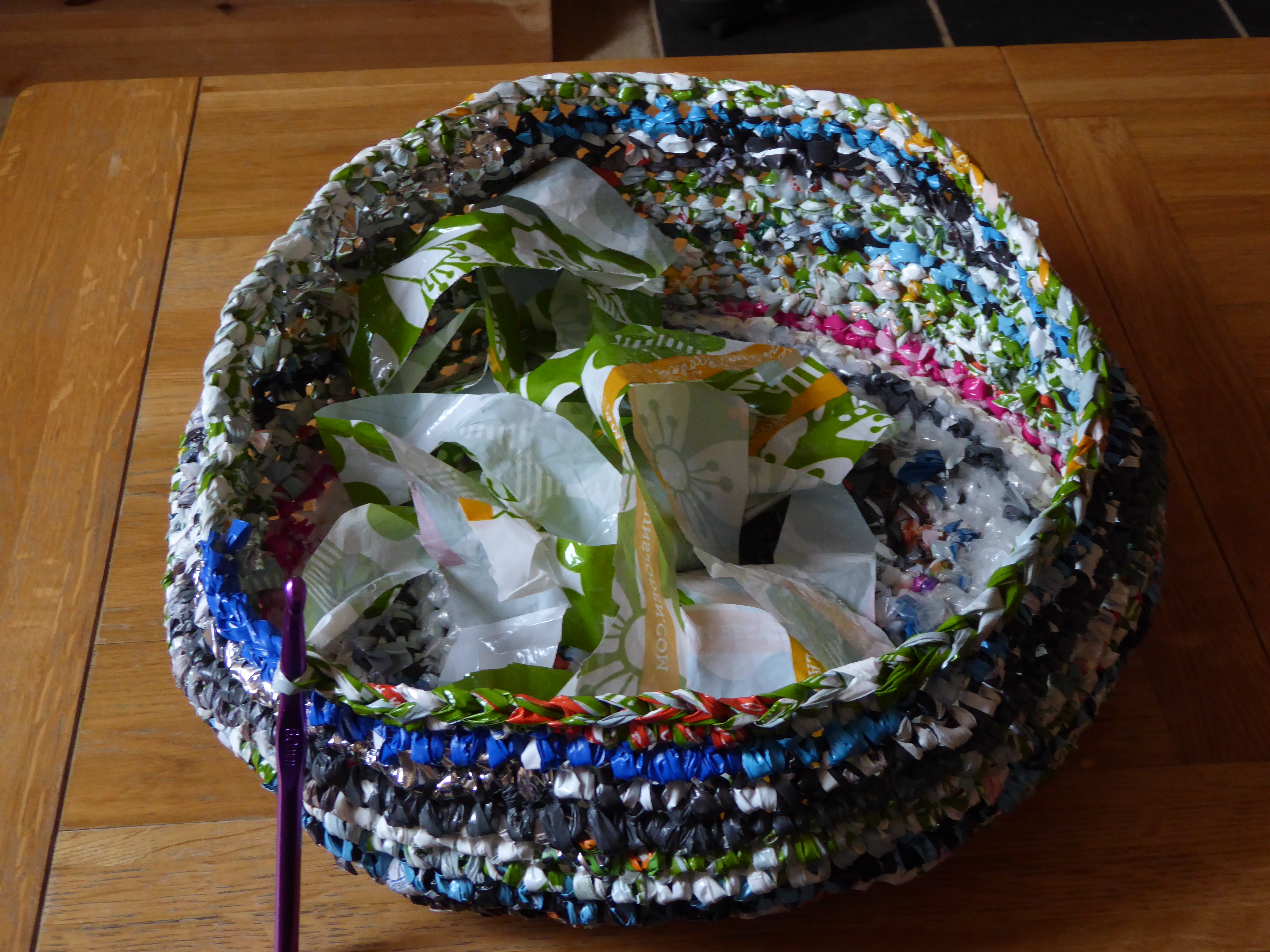 Work In Progress July 20, 2018 • 4896 × 3672 • Pompoms and Handles Starting the basket. Fellow Gudrunistas may recognise the mailing bag being used here…