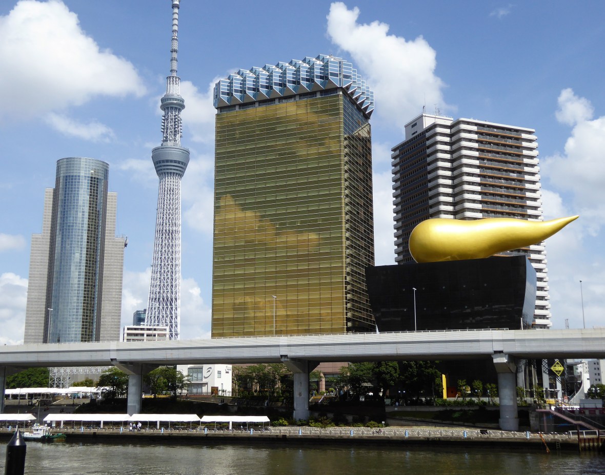 River View September 16, 2018 • 4670 × 3672 • Holiday 2018 Part 1 – Tokyo A view along the river with the SkyTree and the Asahi building that looks like a giant glass of beer.