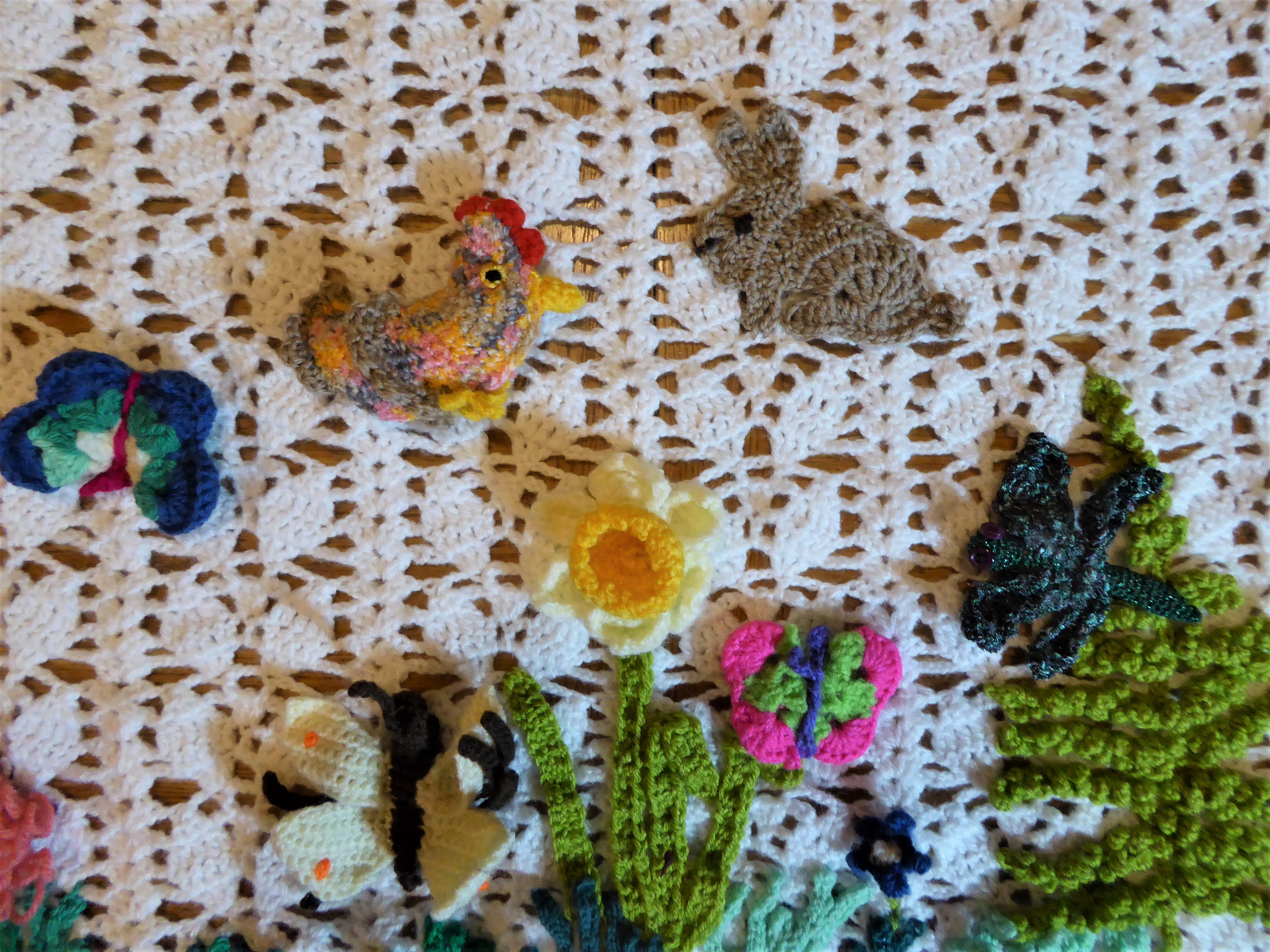 Day 18: Sticking with Eastery things, I went in search of a chicken. I think this Nesting Hen pattern by innerchildcrochet is gorgeous and worth every penny. However, I promised to use free patterns, so I used one of mine! I found this interesting yarn when I was looking through my stash for some brown. It’s so busy I didn’t embroider on top of it, but I rather like it for a feathery speckled hen.