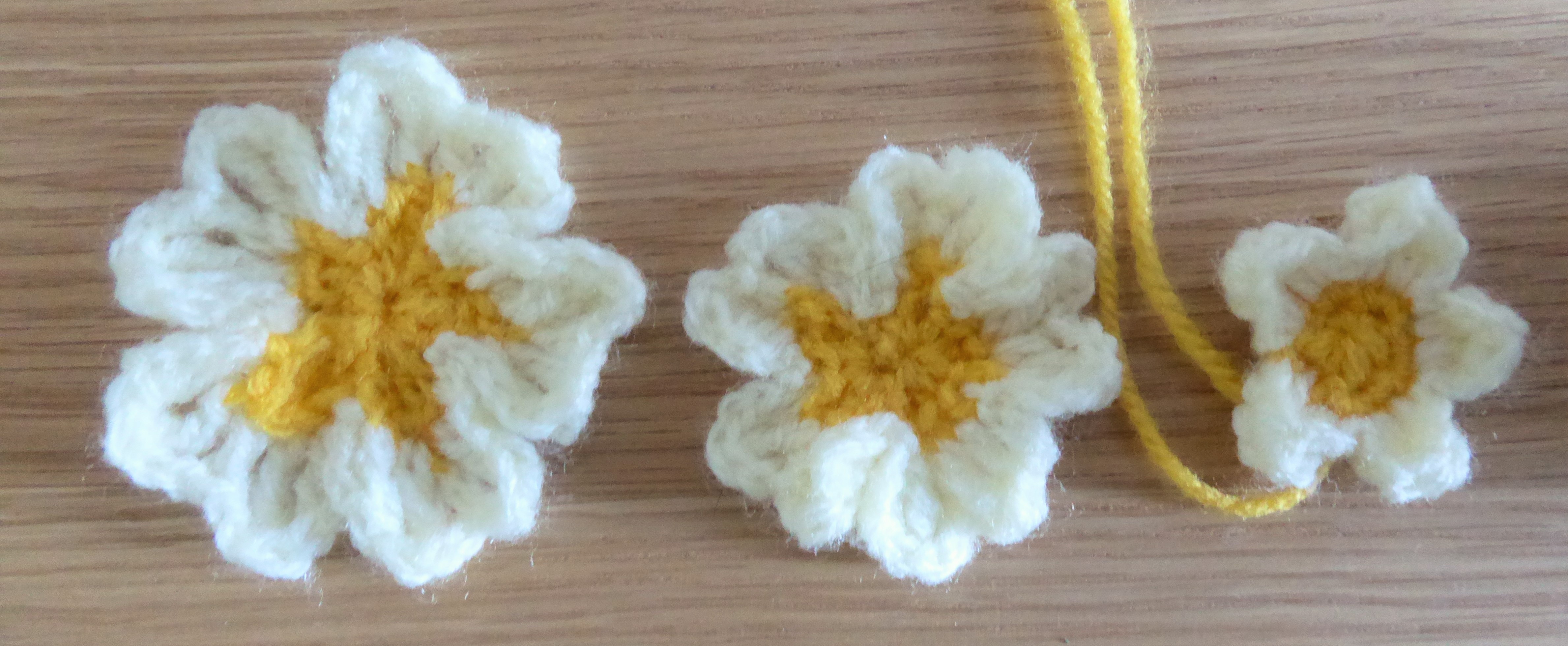 This is the next batch, starting on day 13 of the lockdown, April 4th 2020. I was gradually developing a spring garden theme (in my head at least), and I wanted a cheerful daffodil. I found this YouTube tutorial by HappyBerry crochet.