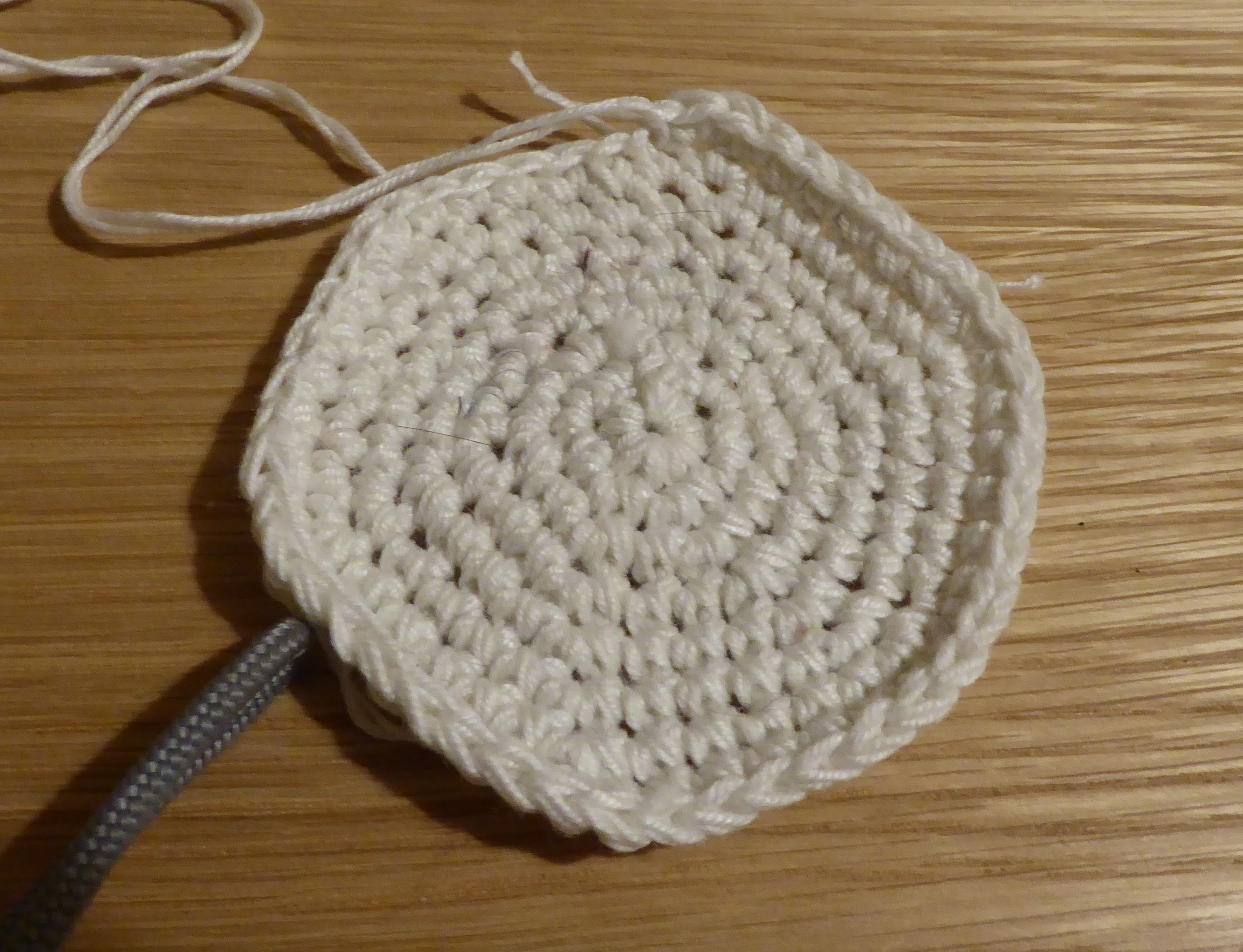 5: DC, DC, DC, 2DC repeat (30 stitches) etc…