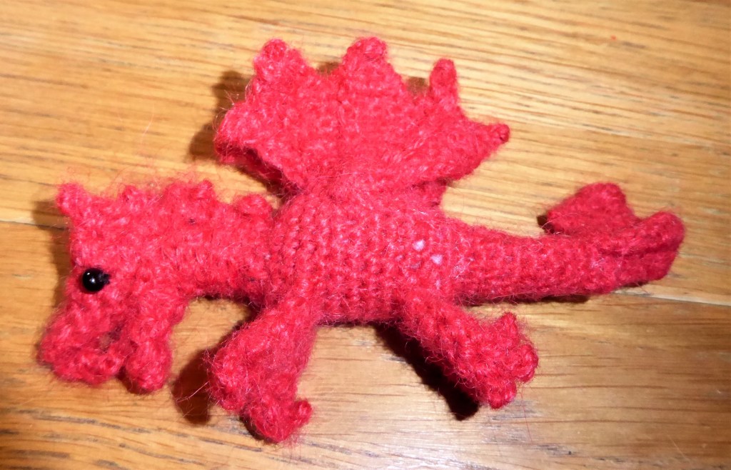 Day 76 – 82: Wanted to make this Norbert the Dragon pattern from Jazmo Crochet, and turn him into a Welsh dragon to join my other flying critters.