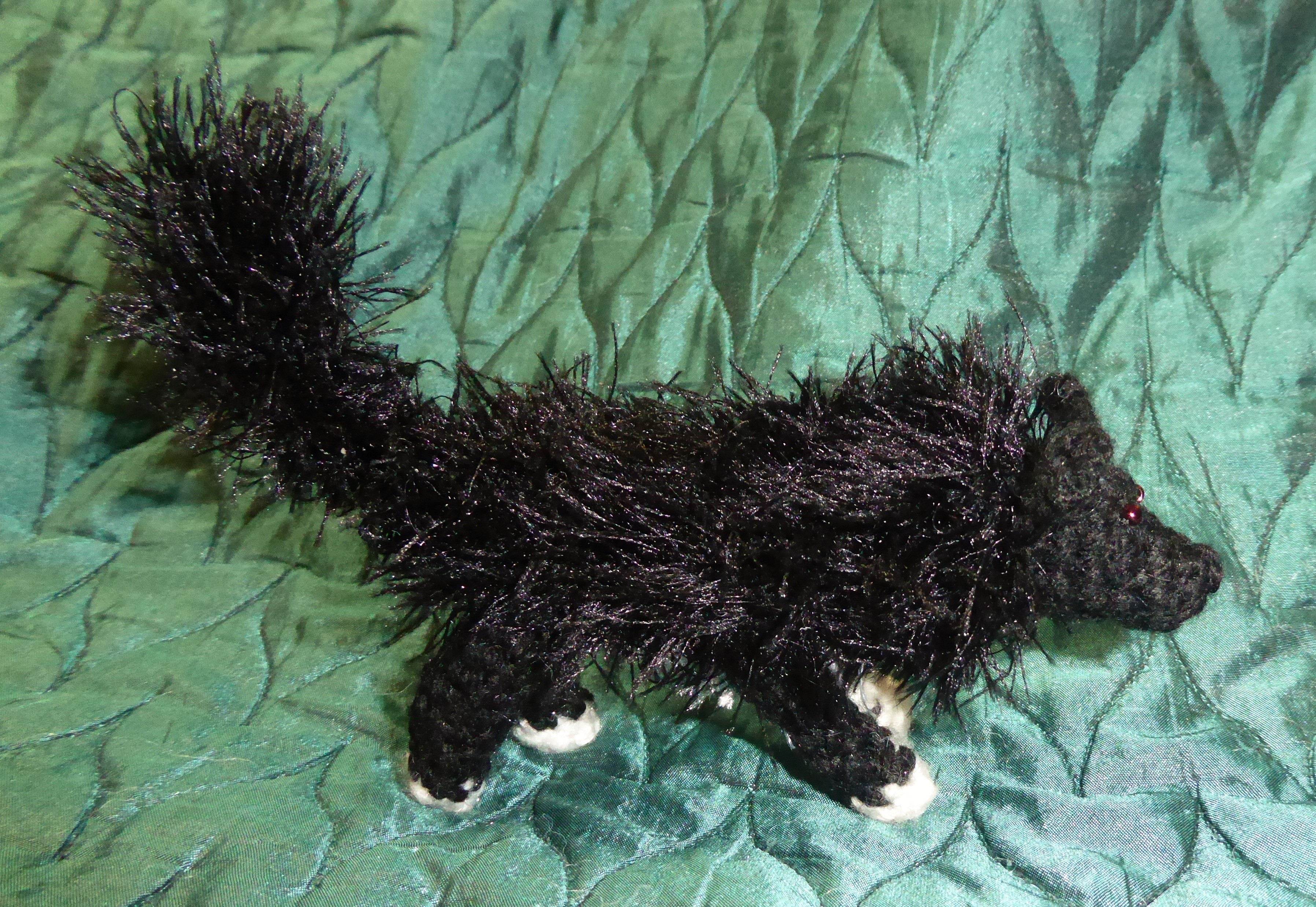 Looked for a free wolf pattern to base my make on, and found that SweetSofties had one, but it’s knitted! (My knitting is abysmal.) But it’s so lovely. The wolf was made using Ravely user B. Humphrey’s free Pocket Fox pattern.