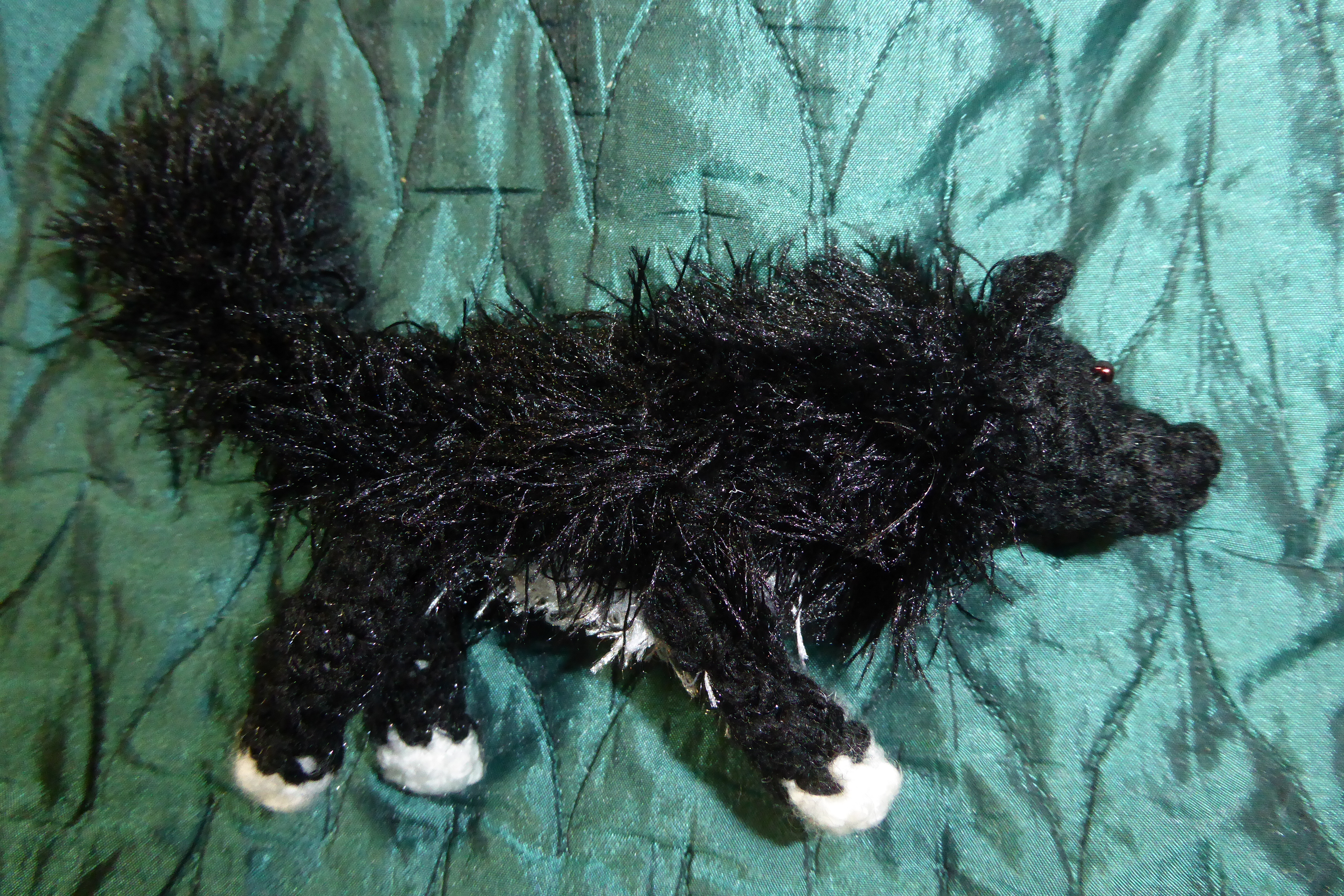 In the end, decided to use the standing fox pattern I used the day before as a guideline and freestyle it. I cheated a bit on my mini Hellbeast’s face using stitching and gathering to shape her muzzle And of course, I decided to use BLACK EYELASH YARN because that’s always a good idea.*