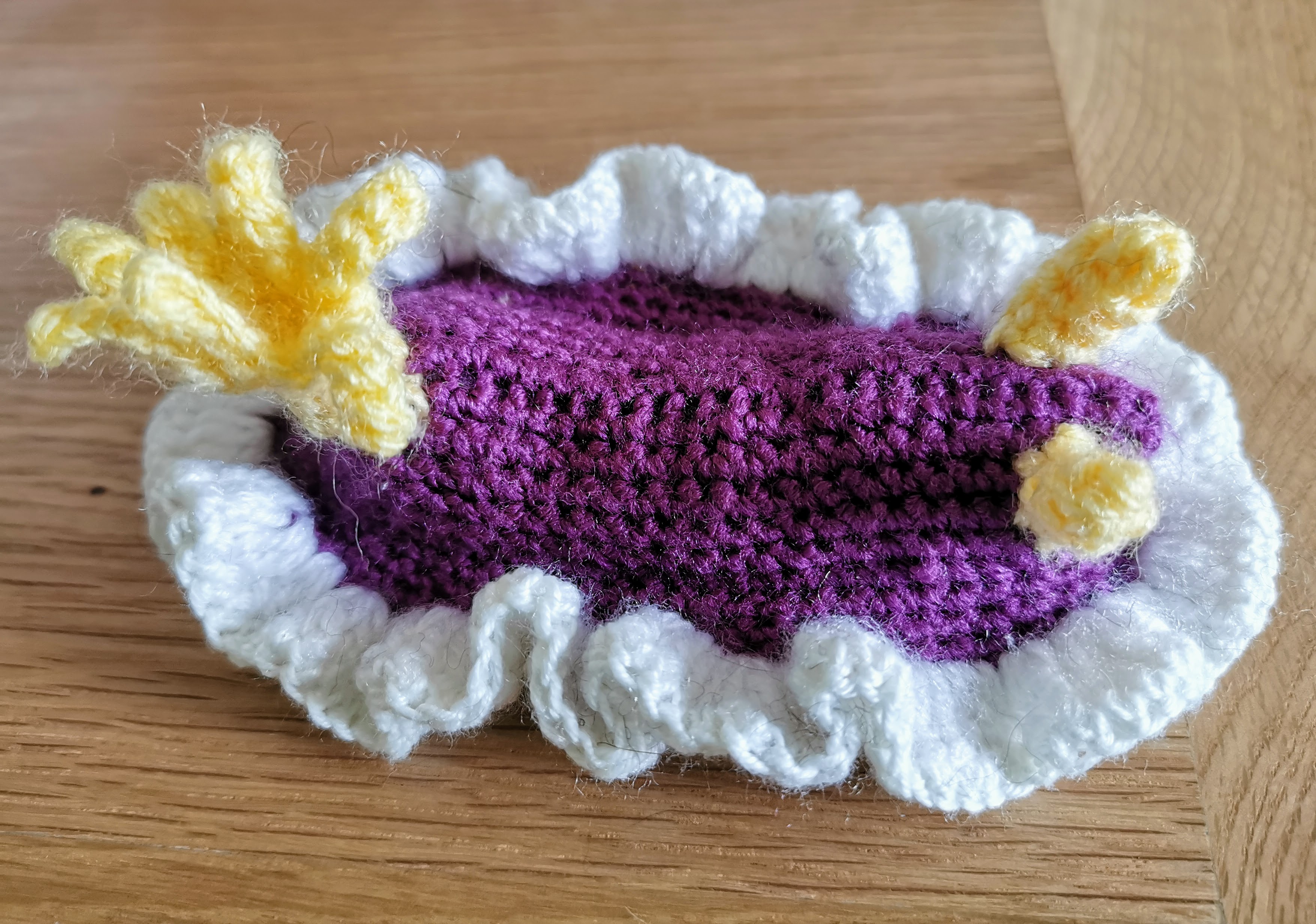 Days 21 – 24 (January 26th – 29th): Wanted a quick and easy win for my lockdown window. This nudibranch (sea slug) pattern by Emma Craft Designs (also on ravelry) was just the thing!
